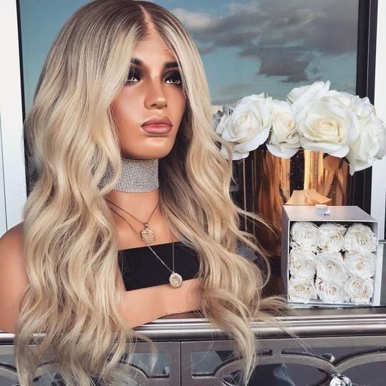 Obmre Blonde Straight Lace Front Wig with Dark Roots 24 inches