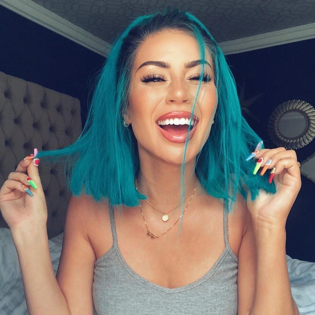 Blue Straight Short Bob Lace Front Wig with Dark Root 12 inches